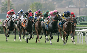 The second division of the Oceanside Stakes demonstrates the meaning of "jockeying for position" out of the gate.