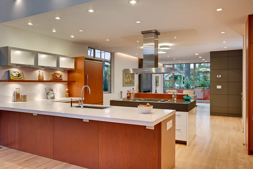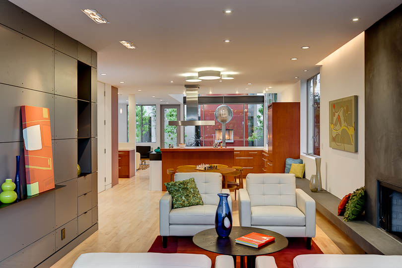 through the living room, kitchen and dining room, to a dramatic