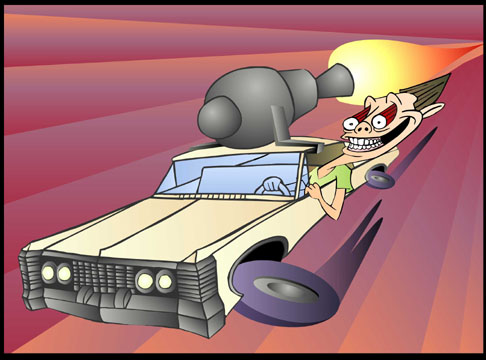 Scott McClave says: "Andy Granitelli ran the legendary STP Indy car racing teams of the 60's and 70's. This tale is from his book, They Call Me Mister 500. Granitelli had experimented with strapping a JATO rocket to a car back in the late 40's. They first tried just one JATO rocket attached to an open-wheel hot rod, with little success. (Later they discovered that the first rocket was a dud.) Thinking they needed more power, they tied multiple JATO rockets to a single start button. Fortunately for Granetelli, only one rocket fired, which still propelled the car well over 150 mph. That was enough to convince him to stop experimenting with JATO rockets. Why did Grantelli survive to tell the story? Because the JATO of the 40's was first-generation, designed to lift a single-engine Navy bomber off the deck of an aircraft carrier. The JATO rocket of today has significantly more thrust, and is typically used to lift a large four-engine C-130 transport off a short, primitive runway. A car just can't keep the modern rocket on the ground." |