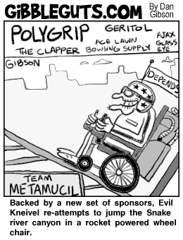 Orphiucus says: "This reminds me of a colleague's reminiscence, which may be the basis of the JATO story. He was a military pilot In the 50's in Guam, when two men strapped not one but two JATO engines to the back of a military Jeep. They took it to Guam's 3-mile airstrip and ignited the engines, which hurled them 200 yards down the runway before the Jeep, now travelling at more than 300 mph, disintegrated. The men were shredded to bits, and the engines broke free from the remains of the jeep and darted wildly around the base before burning out. A film of this incident exists, in a military archive or maybe in a shoebox in someone's attic. "